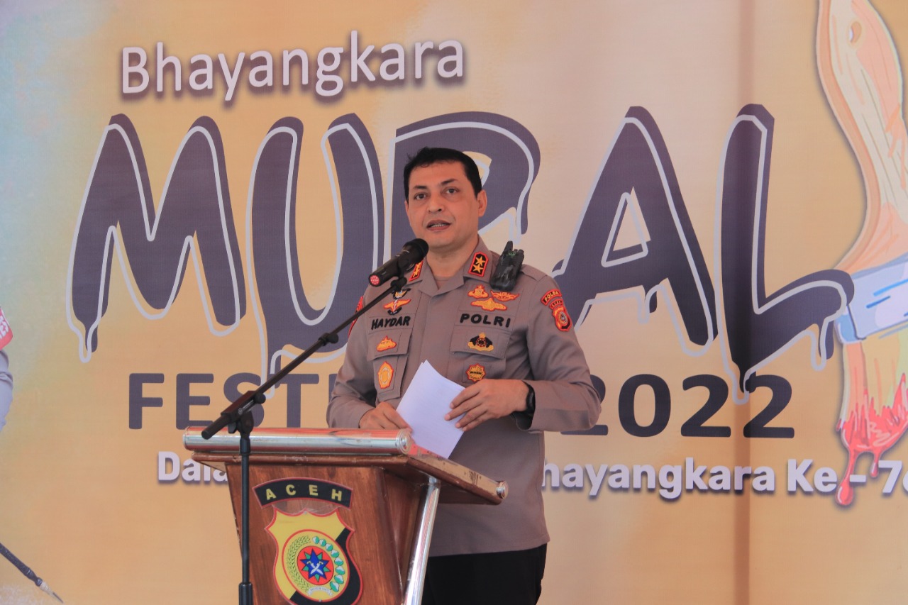 “Lomba mural ini dalam rangka memeriahkan Hari Bhayangkara. Alhamdulillah ramai peserta yang ikut, salah satunya ada dari rekan TNI,” kata Kapolda Aceh Irjen Ahmad Haydar, saat membuka lomba tersebut.