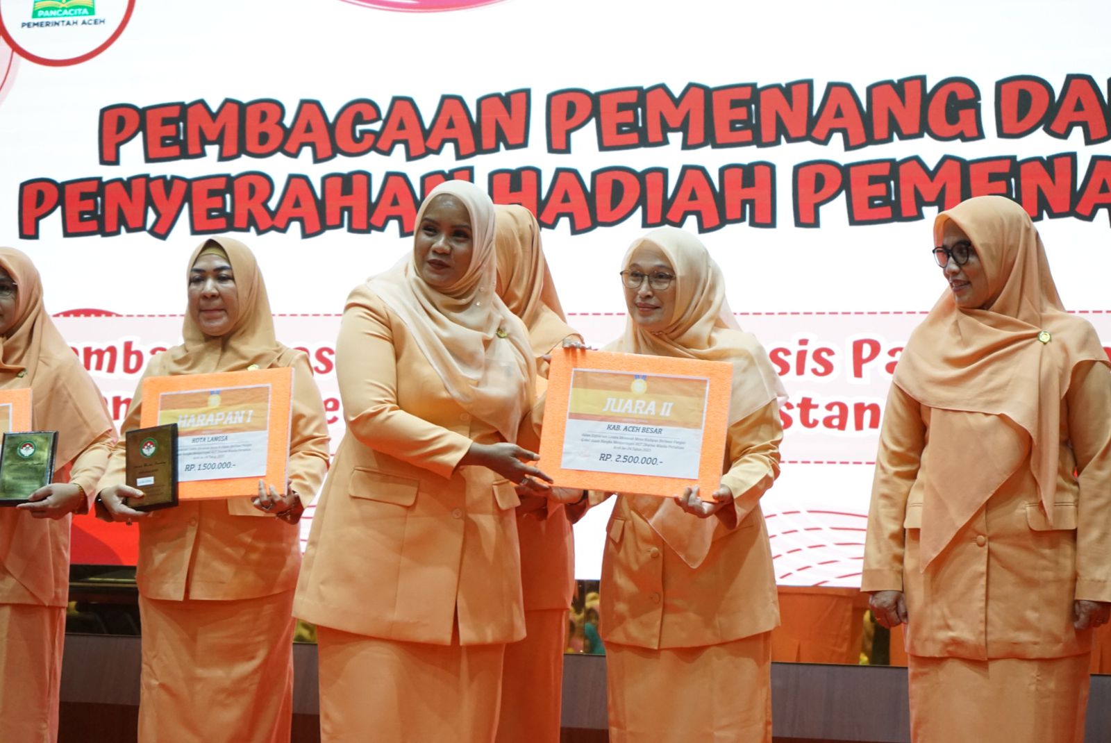 posaceh.com, Kota Jantho – Pengurus Dharma Wanita Persatuan (DWP) Kabupaten Aceh Besar berhasil meraih juara II pada ajang lomba memasak, Kegiatan tersebut digelar oleh DWP Aceh dalam rangka memperingati Hari Ulang Tahun (HUT) KE-24 DWP. Dengan tema “Peran Perempuan Dalam Pembangunan Berkelanjutan”, yang berlangsung di Anjong Mon Mata, Banda Aceh, Kamis, (7/12/2023).