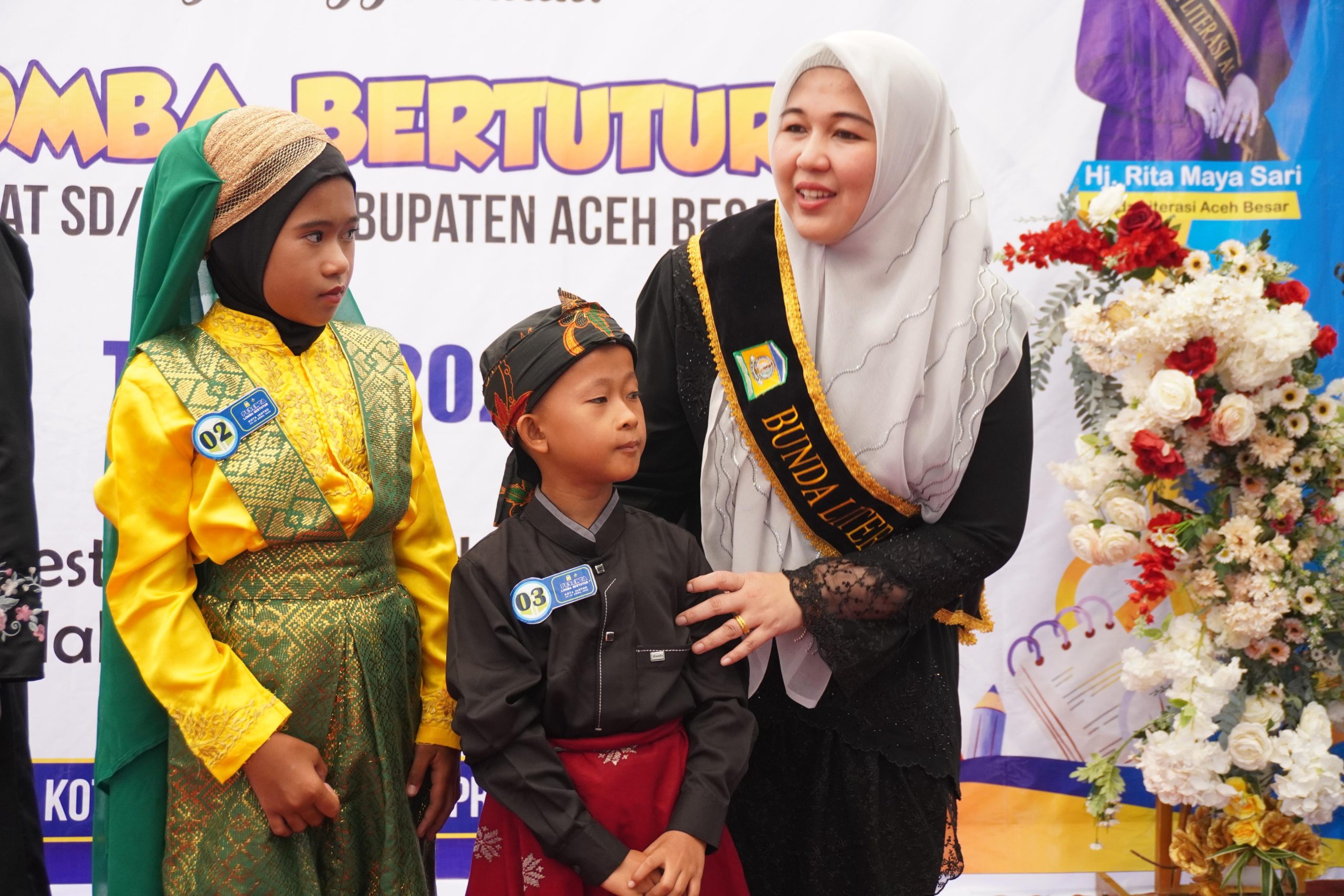 Lomba bertutur yang diikuti 50 peserta didik perwakilan SD/MI itu, dibuka oleh Bunda Literasi Aceh Besar Hj Rita Mayasari di halaman Dinas Perpustakaan dan Kearsipan Aceh Besar, Kota Jantho, Rabu (29/4/2026).