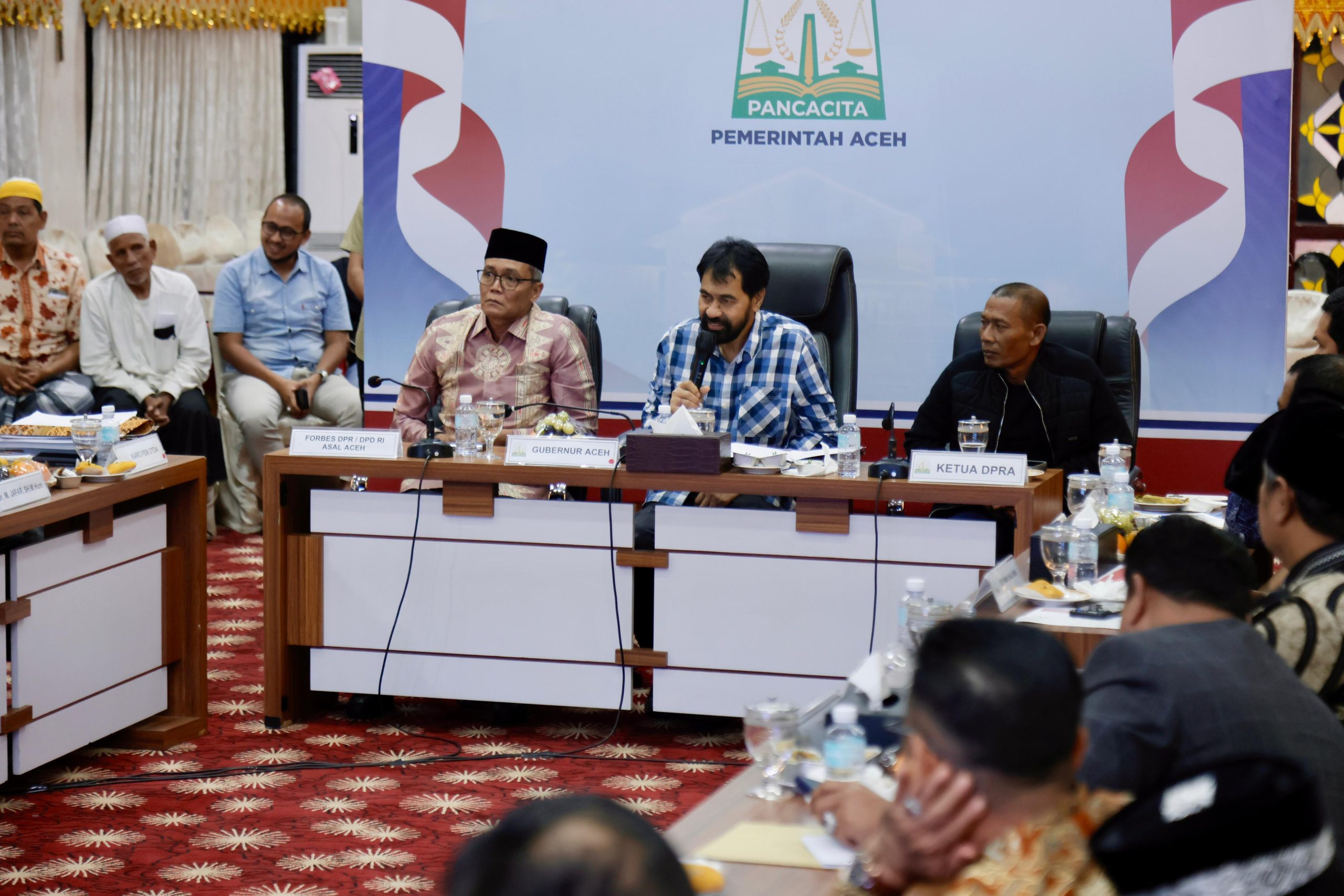 Pertemuan itu juga melibatkan pimpinan dan anggota DPRA, para ketua fraksi DPRA, para ketua partai politik, Plt. Sekda Aceh, para kepala SKPA dan kepala biro, serta rektor perguruan tinggi dan ulama.