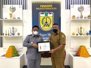 Penghargaan ini diterima oleh Kadispora Banda Aceh, T Syahluna Polem dari Gubernur Aceh dan selanjutnya diserahkan kepada Aminullah di pendapa wali kota, Selasa (14/9/2021).