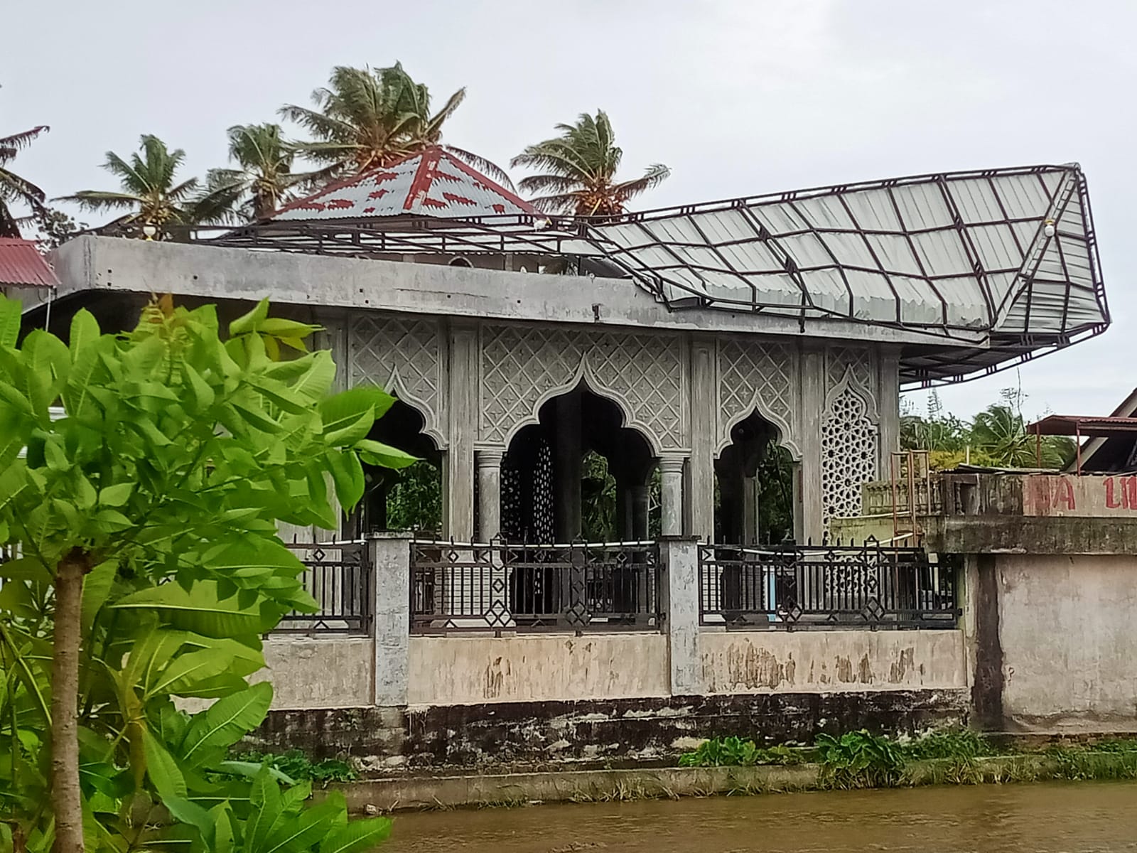 Atap meunasah Gampong Liliep, Kecamatan Simpang Tiga kabupaten Pidie, rusak berat akibat angin kencang, Selasa (09/5/2023).