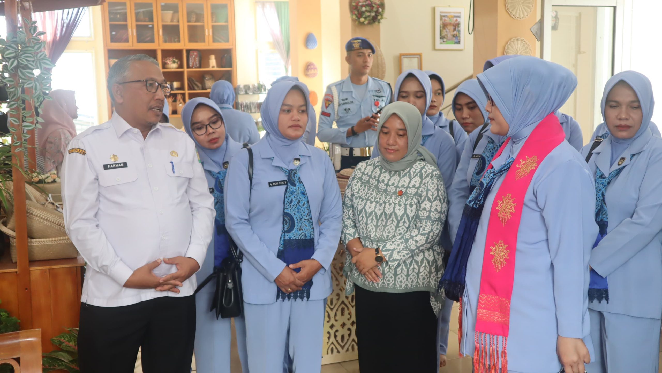 posaceh.com, Kota Jantho – Asisten I Sekretariat Daerah (Sekda) Aceh Besar Farhan AP, menyambut kunjungan Ketua PIA Ardhya Garini Lanud Sultan Iskandar Muda (SIM), Chaca Sasmoyo, ke Dewan Kerajinan Nasional Daerah (Dekranasda) Aceh Besar, di Gampong Gani, Blang Bintang, Aceh Besar, Rabu (23/10/2024).