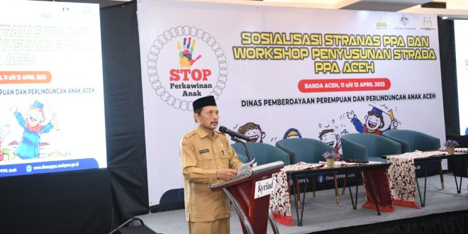 posaceh.com, Banda Aceh – Asisten Pemerintahan, Keistimewaan Aceh dan Kesejahteraan Rakyat Sekda Aceh, M Jafar, membuka kegiatan Seminar Sosialisasi Strategi Nasional Pencegahan Perkawinan Anak (Stranas PPA) dan Workshop Penyusunan Strada Pencegahan Perkawinan Anak, di Hotel Kyriad Muraya, Selasa (11/4/2023).
