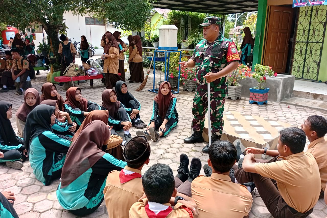 Selain itu, Kepala Sekolah SMP Negeri 1 Darul Imarah, Affilinda, S.Pd., M.Pd, menyambut baik kehadiran Babinsa di sekolahnya. “Kami sangat berterima kasih atas kedatangan Pak Babinsa yang turut memberikan motivasi kepada anak-anak kami. Kehadirannya di sini sangat membantu dalam menanamkan kedisiplinan dan semangat juang kepada siswa-siswi,” ucapnya.