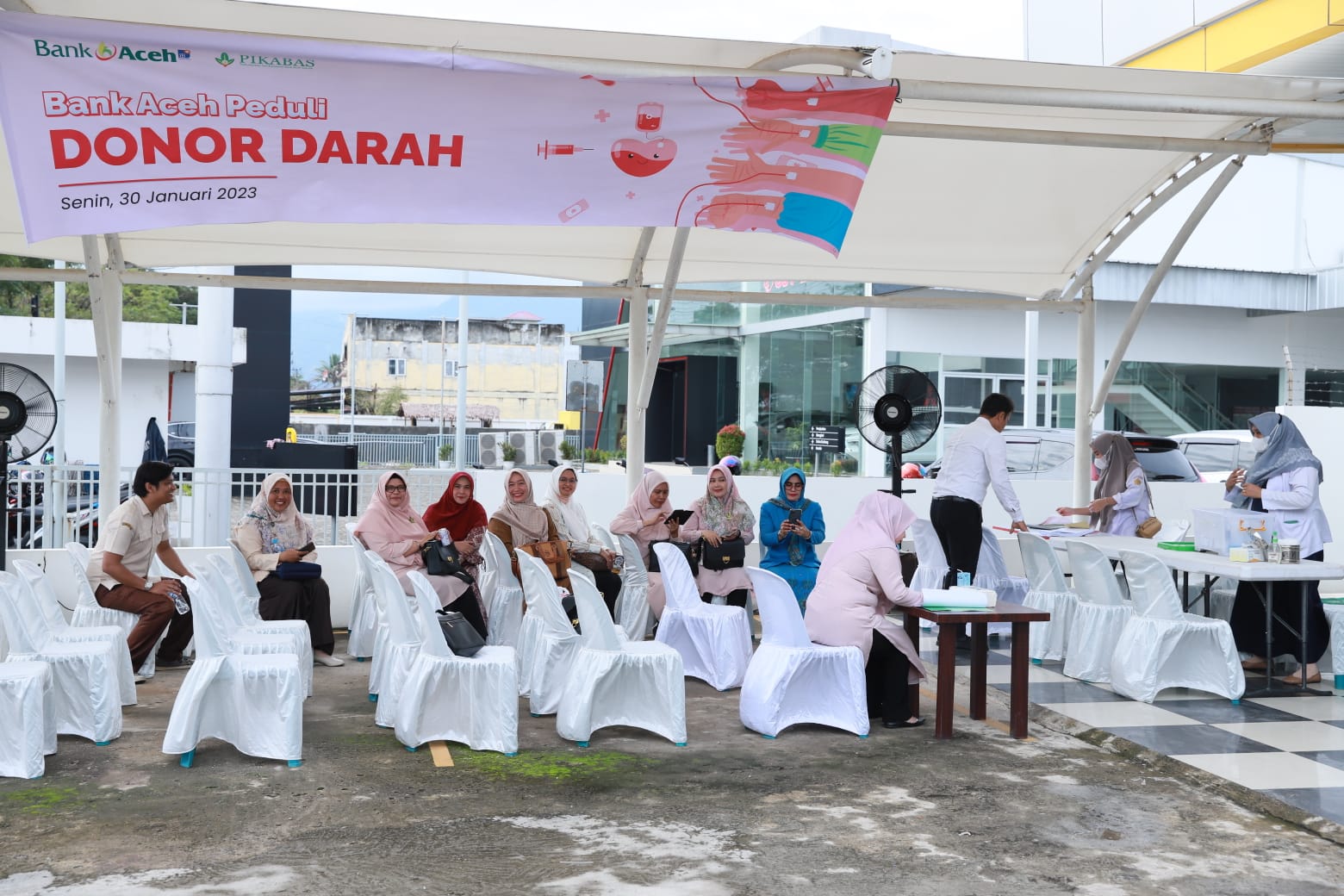 posaceh.com, Banda Aceh – Bank Aceh bekerja sama PMI Cabang Banda Aceh menggelar donor darah di Kantor Pusat Bank Aceh, Banda Aceh, Senin (30/01/2023). Kegiatan dilaksanakan sekaligus dalam rangka peringatan hari ulang tahun Perkumpulan Istri Karyawan Bank Aceh Syariah (Pikabas) yang kedua. Adapun kegiatan mengangkat tema Setetes Darah Anda Berarti untuk Kehidupan.