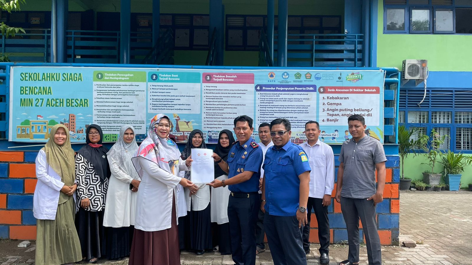 posaceh.com, Kota Jantho – Badan Penanggulangan Bencana Daerah (BPBD) Aceh Besar melakukan penandatanganan kerja sama dengan Madrasah Ibtidaiyah Negeri (MIN) 27 Aceh Besar dalam rangka pelaksanaan program kegiatan Satuan Pendidikan Aman Bencana (SPAB), penandatanganan dilaksanakan di Sekolah MIN 27 Aceh Besar, Selasa (28/3/2023).