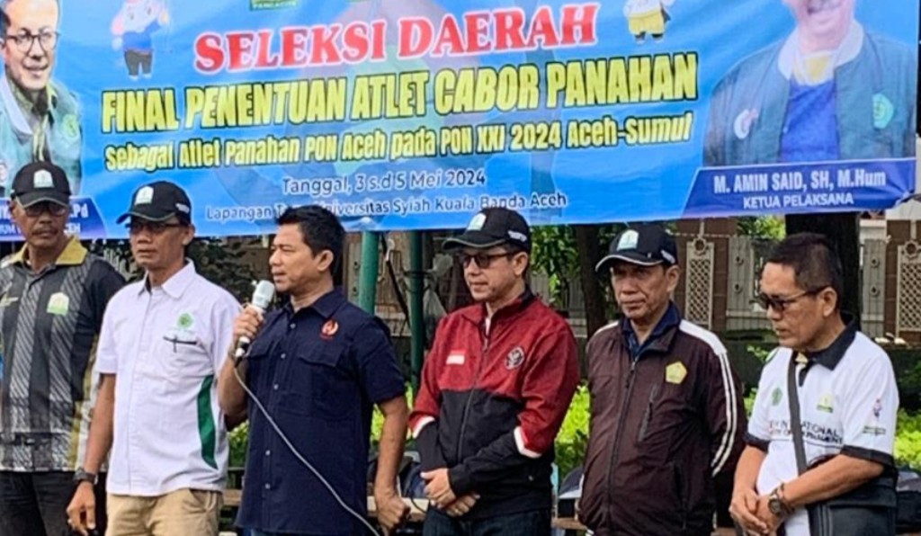 Wakil Sekretaris I KONI Aceh, Devid JP yang mewakili Ketua Umum, Kamaruddin Abubakar atau Abu Razak, menyampaikan harapan tersebut ketika membuka seleksi daerah (Selekda) final penentuan atlet panahan Aceh yang akan diturunkan berlomba di PON XXI/2024 di Lapangan Tugu, Darussalam, Banda Aceh, Sabtu (4/5/2024).