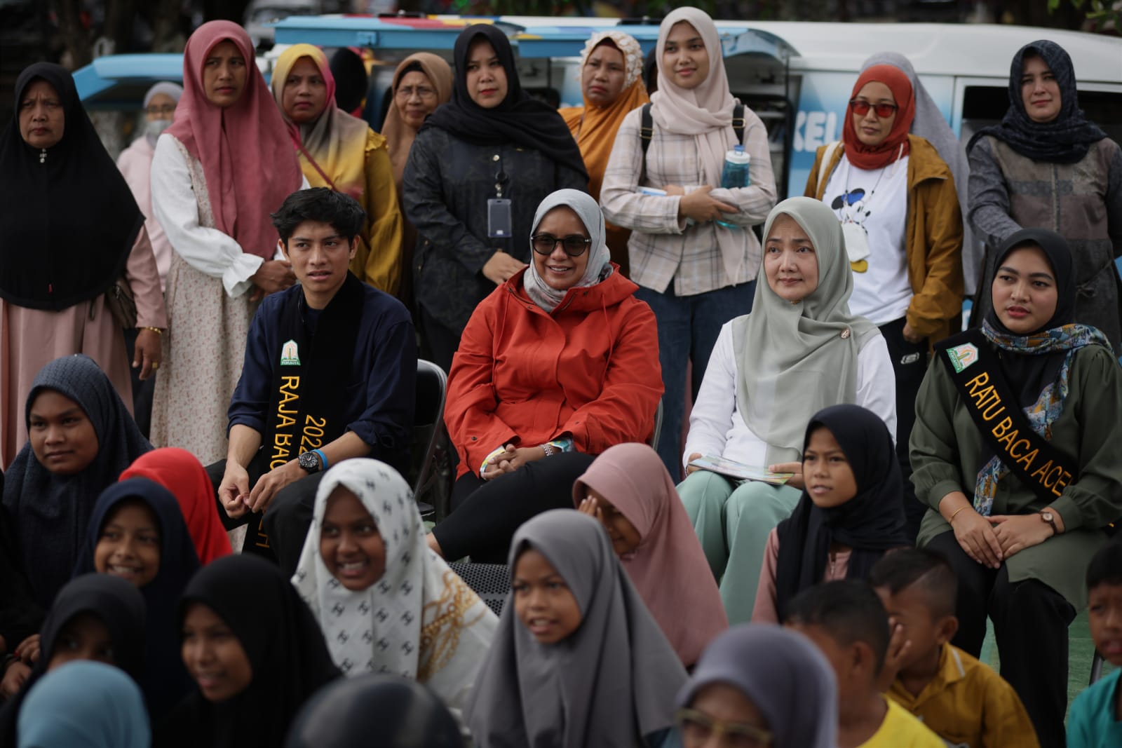 Usai mendengarkan dongeng, Bunda Literasi Aceh mengajak para orangtua untuk mulai memperkenalkan buku dan membaca bersama anak-anak.
