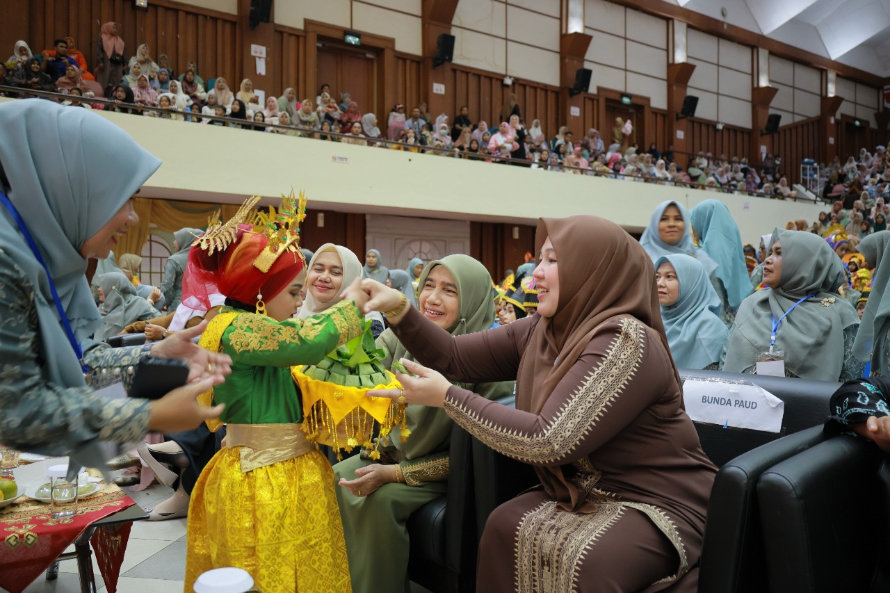 posaceh.com, Kota Jantho – Bunda Pendidikan Anak Usia Dini (PAUD) Aceh Besar, Rita Mayasari, membuka perpisahan dan pergelaran seni tati murid Taman Kanak-kanak (TK) se Kabupaten Aceh Besar di Gedung AAC Dayan Dawood, Universitas Syiah Kuala, Banda Aceh, Selasa (6/5/2025).