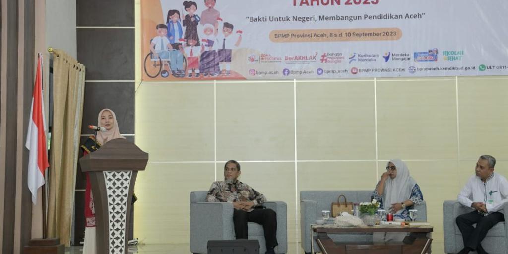 posaceh.com, Kota Jantho – Bunda Pendidikan Anak Usia Dini (PAUD) Aceh Ayu Marzuki membuka Focus Group Discussion (FGD) Mitra Pembangunan yang digelar di Balai Penjaminan Mutu Pendidikan Provinsi Aceh, Jumat 8 September 2023. Ayu bersama Ketua Pokja Bunda PAUD Aceh Mellani Bustami, juga menjadi pembicara dalam acara itu.