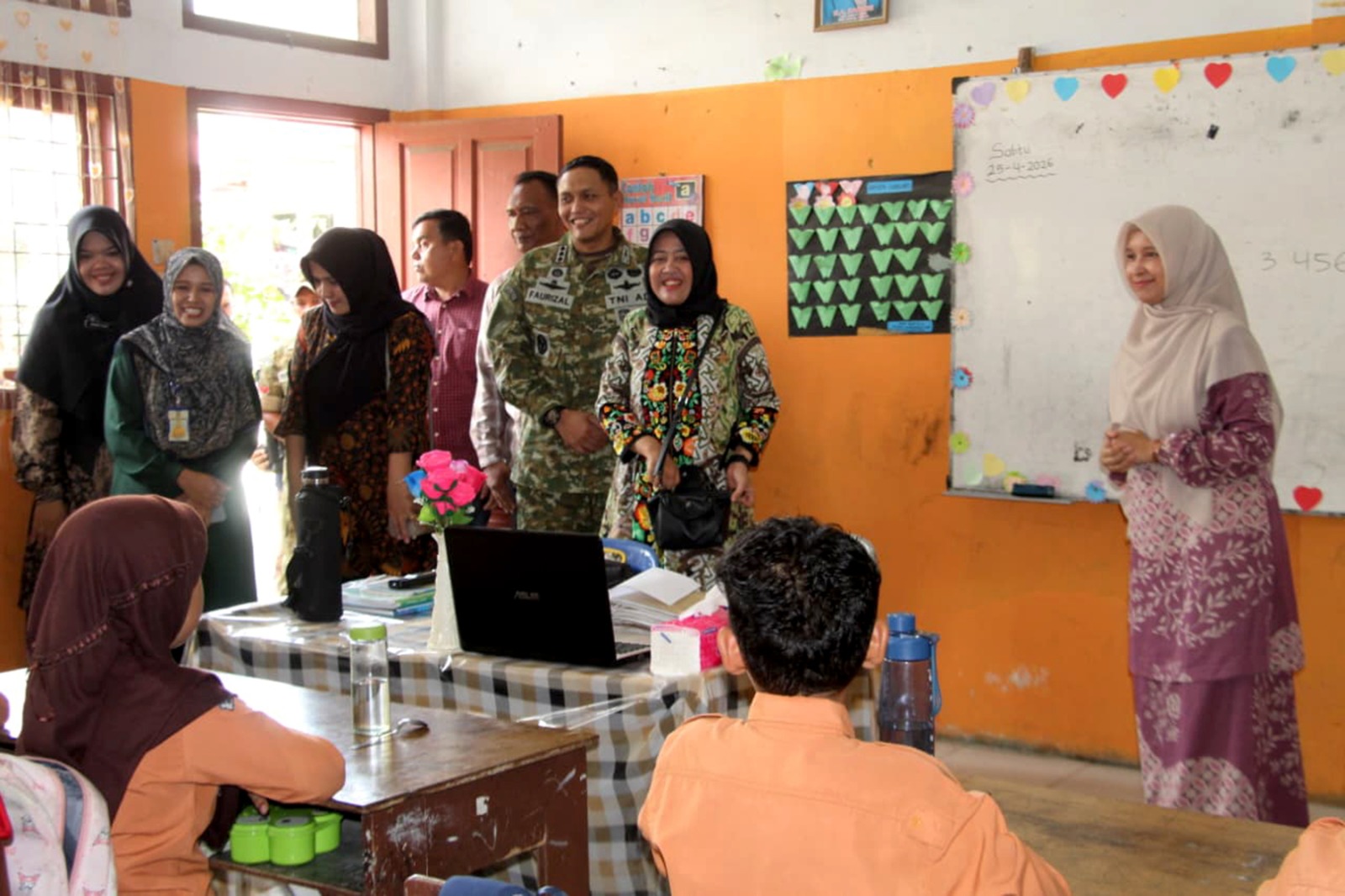 posaceh.com, Banda Aceh – Komandan Kodim (Dandim) 0101/Kota Banda Aceh, Kolonel Inf Faurizal Noerdin, S.Sos., M.Sc, bersama Ketua Persit Kartika Chandra Kirana Cabang XXVII Kodim 0101/KBA, Ny. dr. Eka Faurizal, M.Kes, melaksanakan peninjauan terhadap Satuan Pelayanan Pemenuhan Gizi (SPPG) serta kualitas pelaksanaan program Makan Bergizi Gratis (MBG) di SDN 56 Banda Aceh, Kecamatan Ulee Kareng, Kota Banda Aceh, Sabtu (25/4/2026).