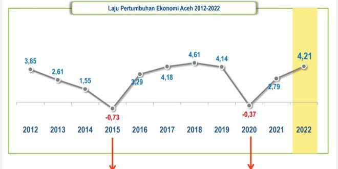 “Ekonomi Aceh tahun 2022 tumbuh sebesar 4,21 persen dengan migas sementara tanpa migas tumbuh sebesar 3,80 persen. Dari sisi produksi, pertumbuhan tertinggi dicapai oleh lapangan usaha penyediaan akomodasi dan makan dan minum sebesar 32,40 persen. Dari sisi pengeluaran pertumbuhan tertinggi ada di komponen ekspor barang dan jasa luar negeri yaitu sebesar 20,83 persen,” demikian isi rilis BPS tersebut.