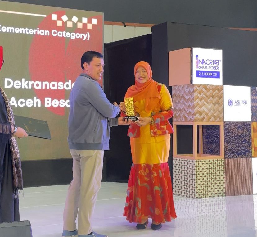 Dewan Kerajinan Nasional Daerah (Dekranasda) Kabupaten Aceh Besar yang dipimpin Cut Rezky Handayani, SIP MM berhasil mendulang prestasi gemilang ditingkat Nasional. Kali ini tiga penghargaan mampu diraih Dekranasda Aceh Besar dalam ajang The Jakarta International Handicraft Trade Fair (INACRAFT) on October 2024.