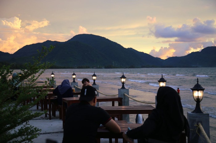 Kawasan pantai ini ramai dikunjungi warga lokal, nusantara dan mancanegara setiap akhir pekan untuk menikmati nuansa sore yang indah, yakni paparan sinar terbenamnya matahari dengan latar pegunungan dan Pulau Weh Sabang, serta samudera yang luas.