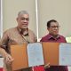 Pj Gubernur Aceh Dr. H. Safrizal ZA, M.Si., didampingi Plh Sekretaris Daerah Aceh Azwardi AP, M.Si., memanggil kontraktor penangung jawab pembangunan Stadion Harapan Bangsa Banda Aceh, untuk membuat klarifikasi serta permohonan maaf terkait kehadiran Mbak Rara sebagai pawang hujan dalam SHB, di Ruang Rapat Gubernur Aceh, Rabu (28/8/2024). FOTO/ HUMAS PEMERINTAH ACEH