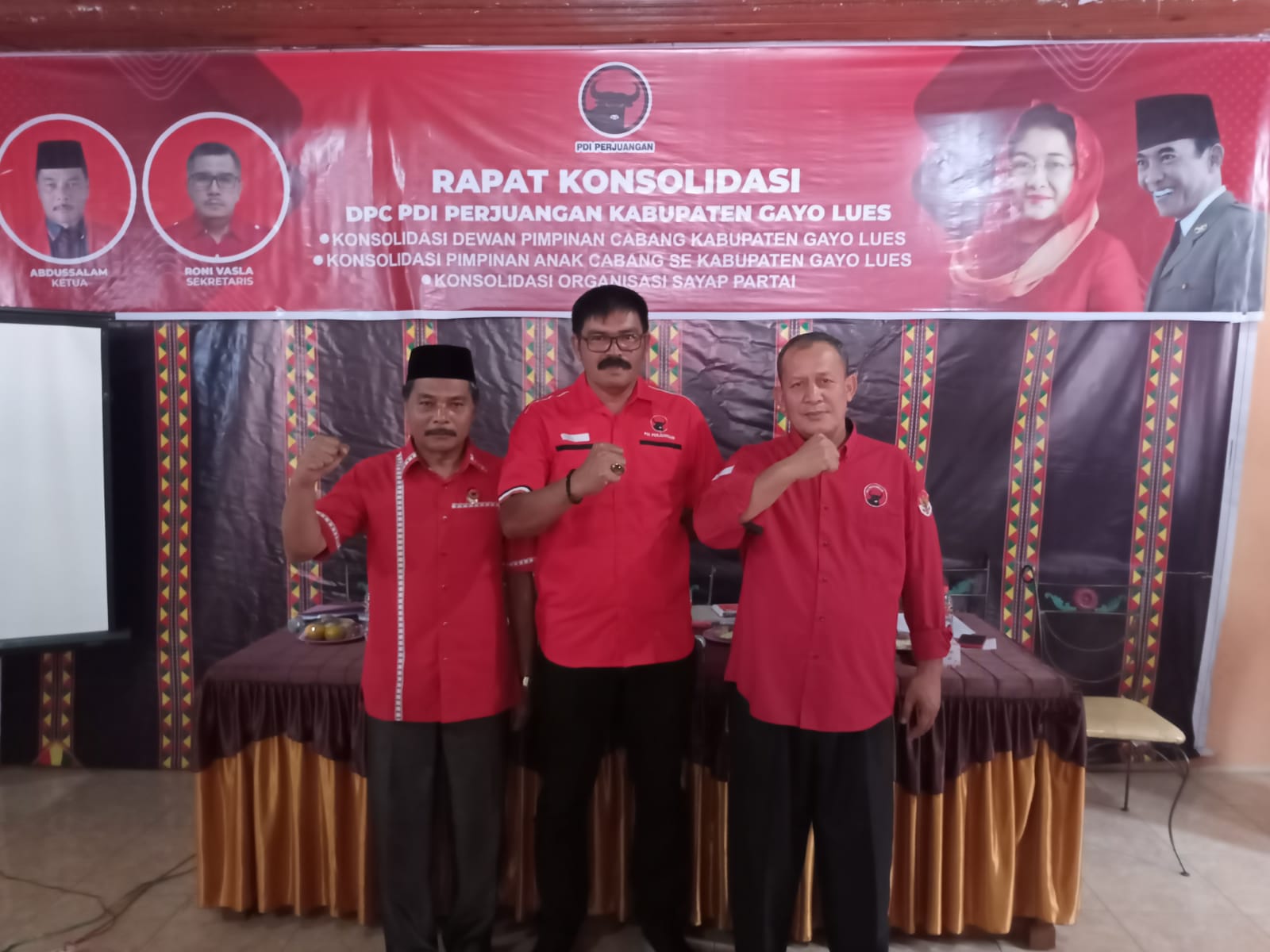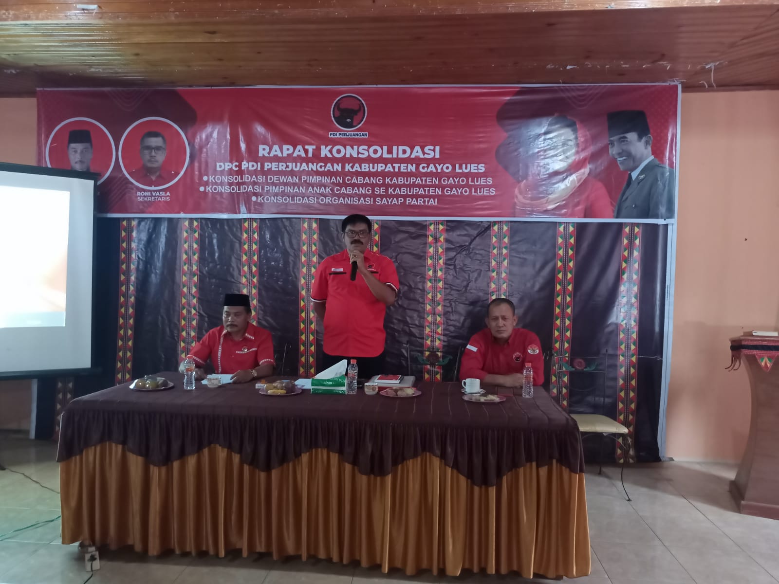 Selain itu lanjutnya, dari 11 Kecamatan 100% itu sudah ada, namun 85% sudah dianggap solid. Untuk memperkuat Partai DPC PDI Perjuangan Gayo Lues akan terus melakukan Konsolidasi mulai tingkat Pimpinan Anak Cabang hingga ke Pimpinan Anak Ranting.