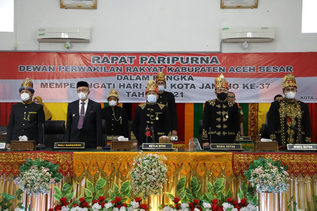 posaceh.com, Kota Jantho – Dewan Perwakilan Rakyat Kabupaten (DPRK) Aceh Besar melaksanakan rapat Paripurna DPRK Aceh Besar dalam rangka peringatan Hari Jadi Kota Jantho ke-37 tahun 2021 di Gedung DPRK Aceh Besar, Senin (3/5/2021).
