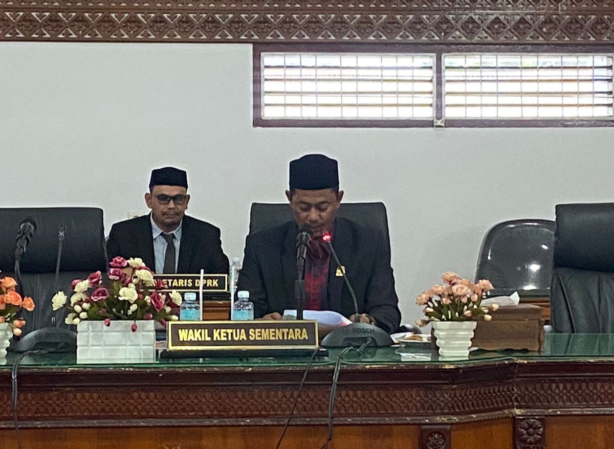 Pimpinan DPRK sementara, Naisabur, memimpin rapat paripurna penetapan usulan nama-nama pimpinan definitif DPRK Banda Aceh periode 2024-2029, di Gedung DPRK Banda Aceh, Senin (23/09/2024). FOTO/ HUMAS DPRK ACEH BESAR