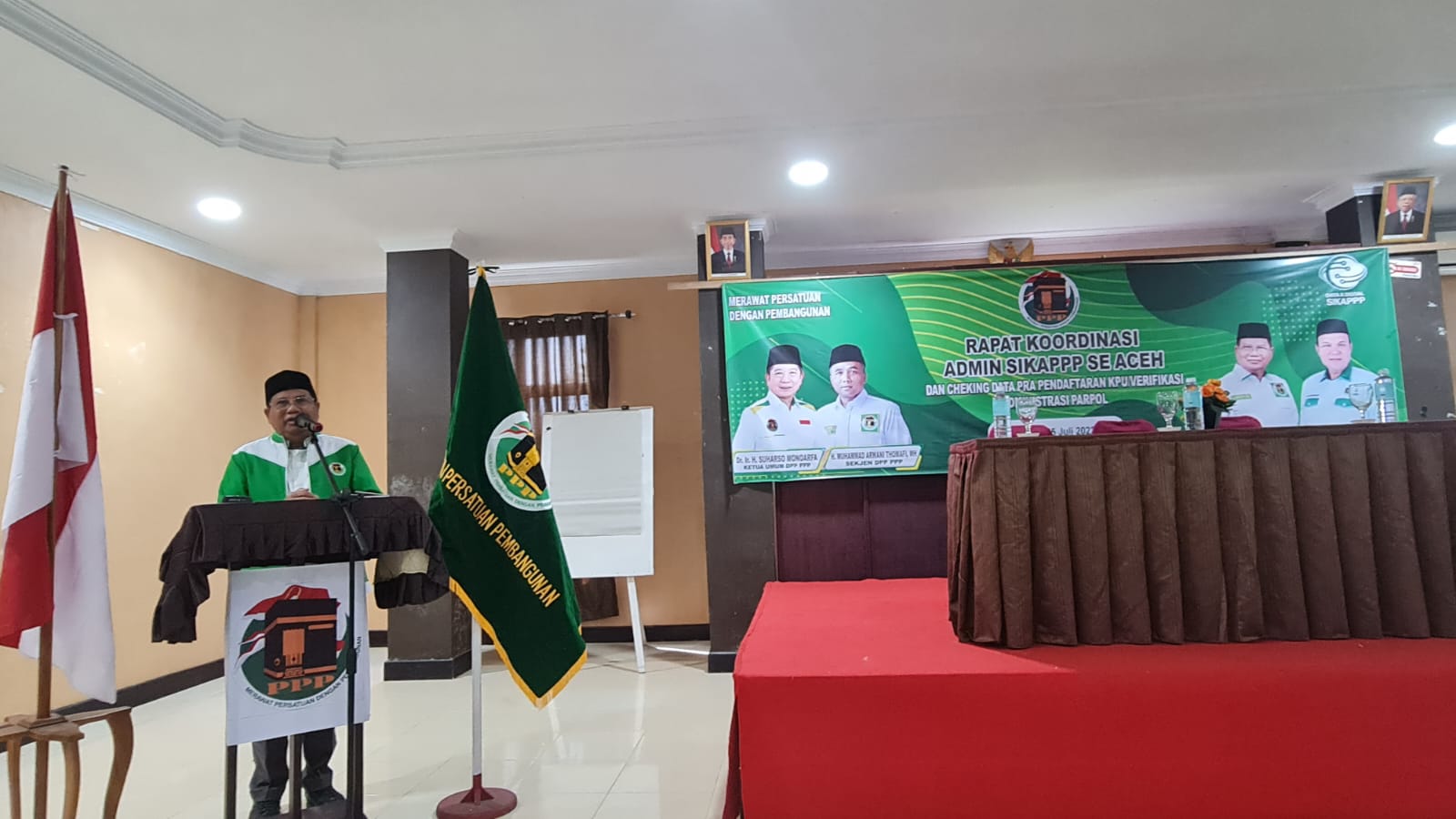 Posaceh.com Banda Aceh| Dalam rangka persiapan pendaftaran Partai ke Komisi Pemilihan Umum(KPU), Dewan Pimpinan Wilayah Partai Persatuan Pembangunan (DPW PPP) Aceh menggelar Rapat Koordinasi Sistem Integrasi Kesekretariatan Partai Persatuan Pembangunan (SIKAPP) dengan Dewan Pimpinan Cabang Se Aceh.