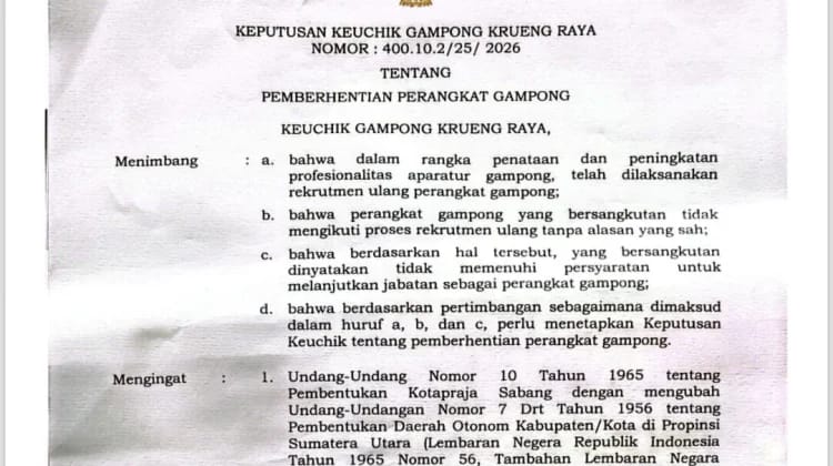 Dari laporan masyarakat yang diterima RRI, Polemik ini disinyalir berawal sejak pergantian kepemimpinan gampong pada awal tahun 2026. Isu perombakan perangkat desa yang sudah berembus sejak masa suksesi kepemimpinan kini mulai terealisasi melalui proses rekrutmen yang dinilai janggal.
