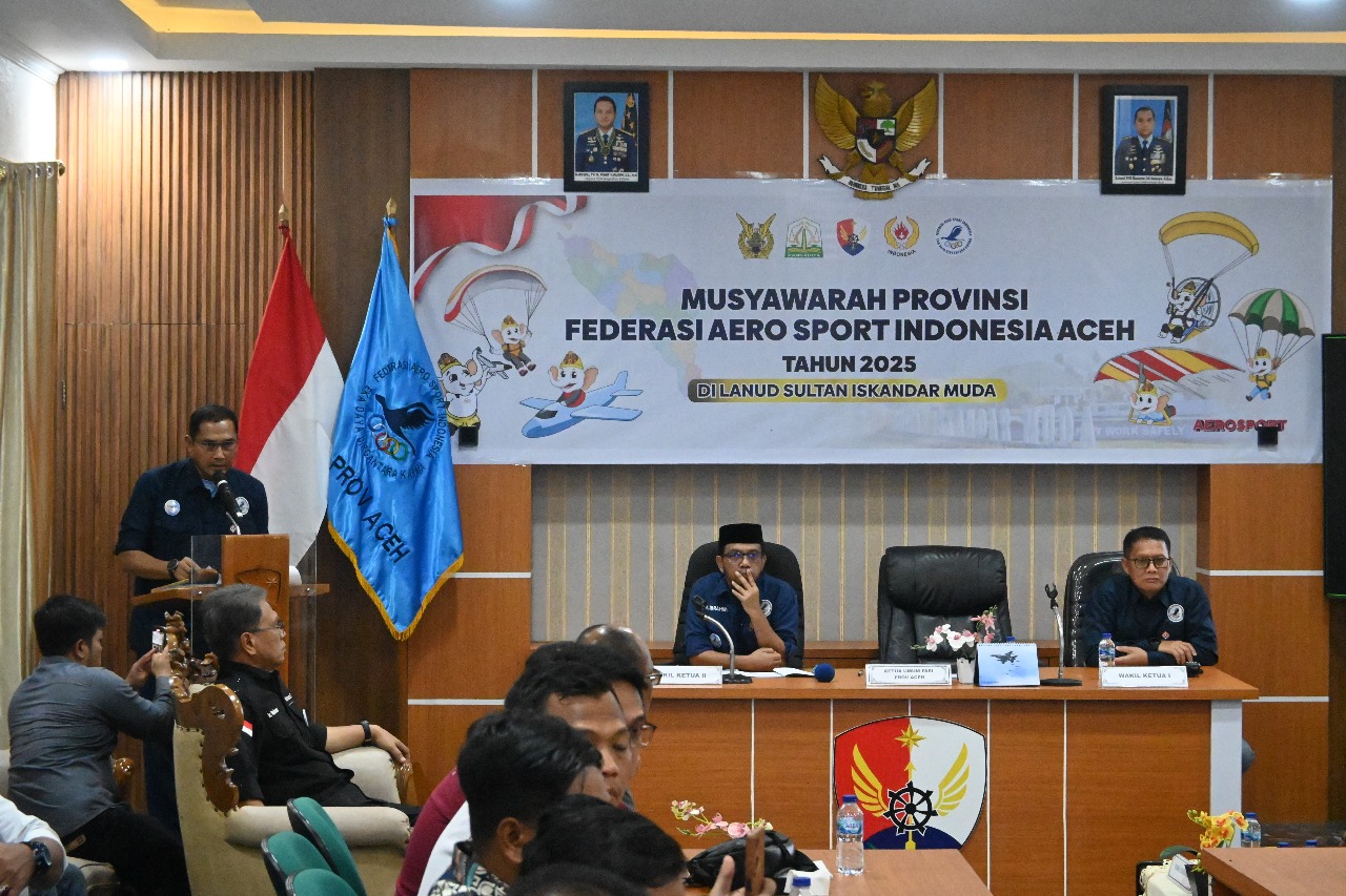posaceh.com, Kota Jantho – Federasi Aero Sport Indonesia (FASI) Provinsi Aceh menggelar Musyawarah Provinsi (Musprov) tahun 2025 sebagai momentum strategis untuk mengevaluasi kinerja organisasi dan menentukan arah baru bagi kemajuan olahraga dirgantara di Aceh, di Ruang Rapat Utama (Rupat) Markas Komando Lanud Sultan Iskandar Muda, Blang Bintang, Aceh Besar, Jumat (16/5/2025).