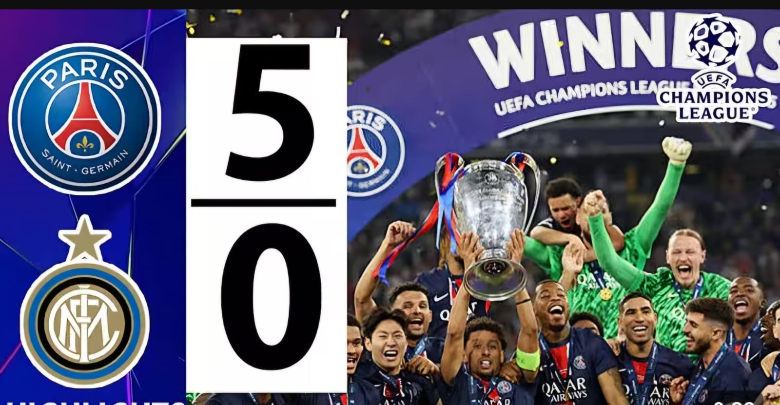 Ini merupakan kekalahan kedua pada kurun waktu tiga musim terakhir saat Inter Milan bermain di final Liga Champions. Sementara untuk Les Parisiens, anak asuh Luis Enrique merayakan titel juara pertama mereka pada ajang Liga Champions.
