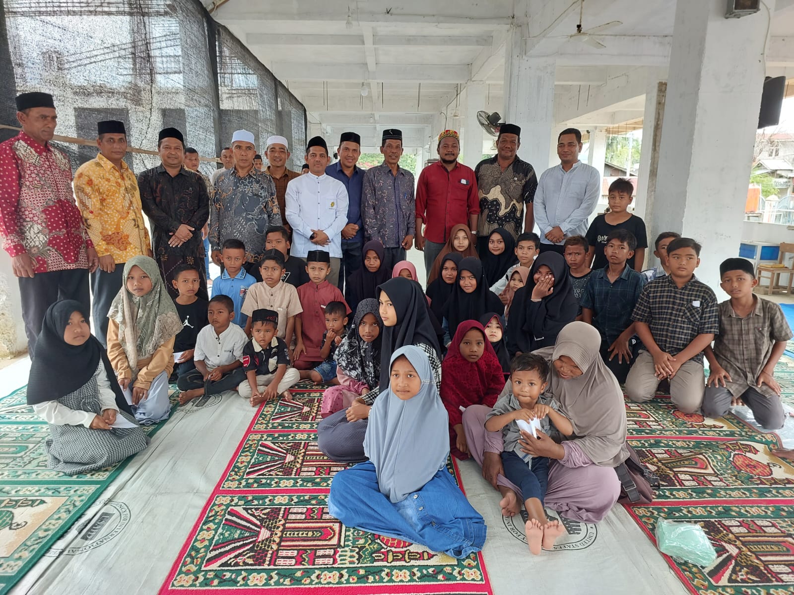 Camat Kuta Cot Glie Zulkifli,S.Sos foto bersama usai santunan anak yatim di Komplek Masjid Al Ichsan Kuta Cot Glie Kabupaten Aceh Besar, Minggu (10/12/2023). FOTO/CBOY