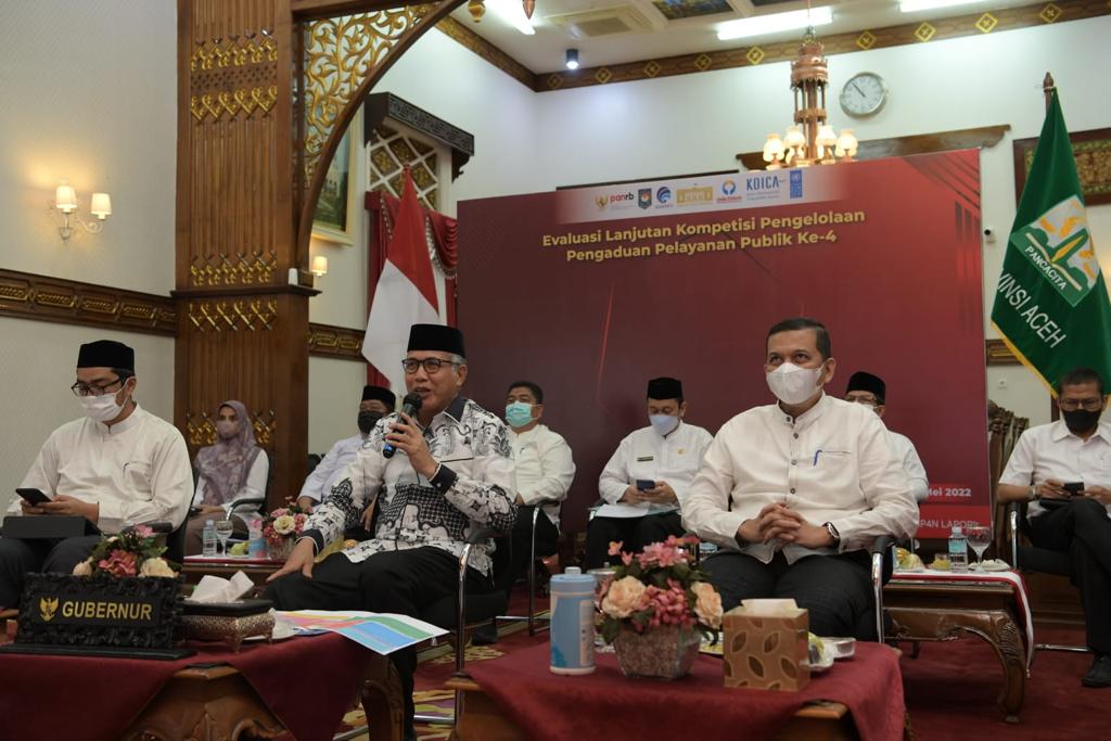 posaceh.com, Banda Aceh – Gubernur Aceh, Ir. H. Nova Iriansyah MT., memaparkan berbagai strategi dan implementasi pengelolaan pengaduan Pemerintah Aceh, dalam Kompetisi Pengelolaan Pengaduan Pelayanan Publik ke 4 yang digelar Kementerian Pendayagunaan Aparatur Negara dan Reformasi Birokrasi (PANRB). Kegiatan nasional itu merupakan yang keempat kalinya sejak pertama kali digelar pada tahun 2018.