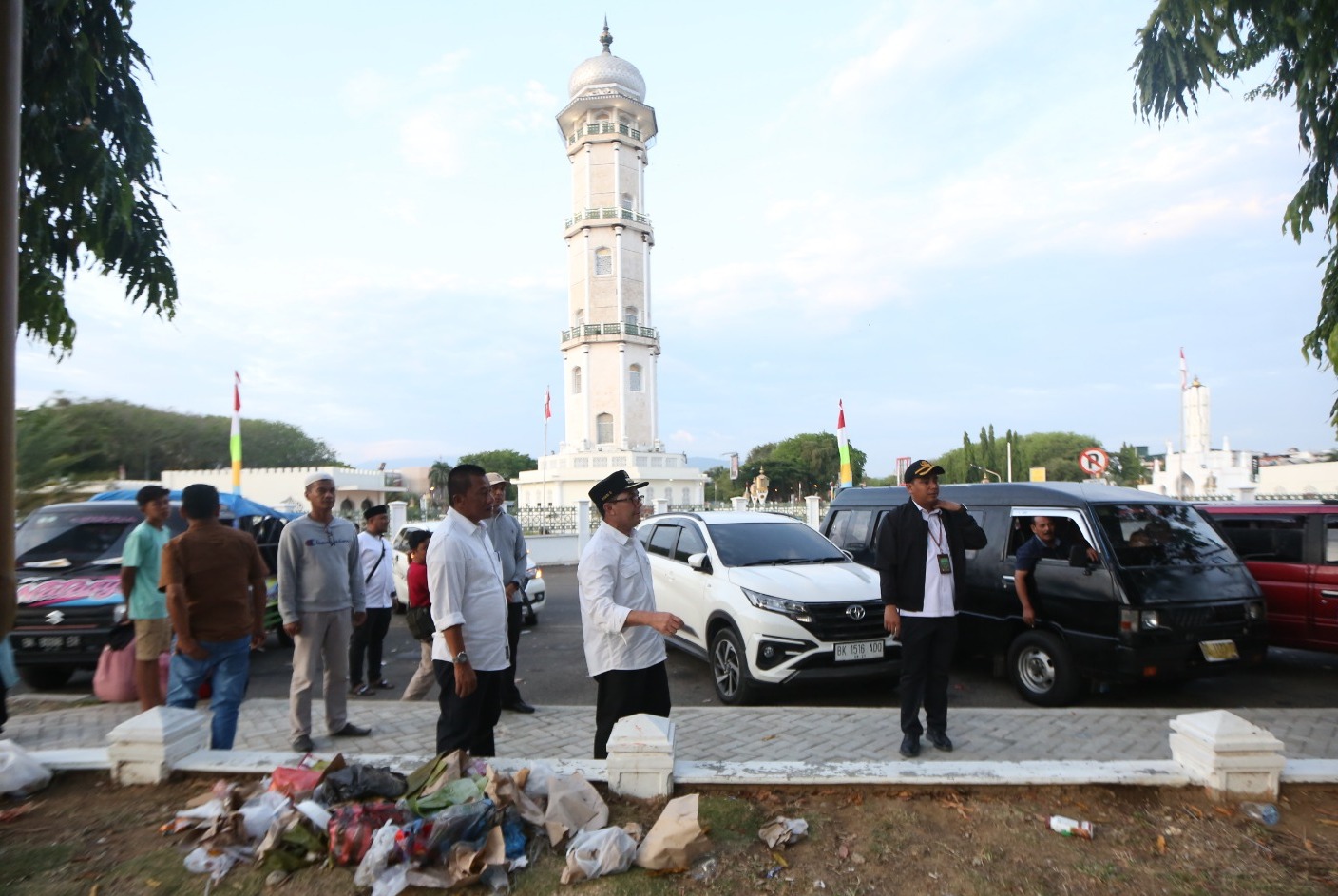 Tak sekedar menyemangati, Bakri Siddiq turut turun langsung ke lapangan bersama pasukan oranye untuk membersihkan kota. Salah satunya di seputaran Masjid Raya Baiturrahman hingga ke kawasan Pasar Aceh. Momen itu juga ia manfaatkan untuk bertegur sapa dan bersalaman dengan warga serta wisatawan yang sedang berada di Banda Aceh. (Aril)