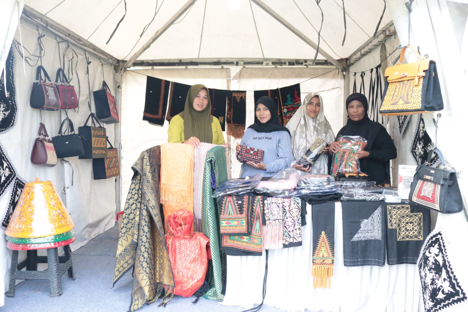 “Para UMKM ini memamerkan beragam produk hasil karya mereka seperti aksesori, bodir Aceh, songket, tas dordir, Kasap, anyaman rotan, anyaman bambu, dan aneka kuliner lain seperti kue,” katanya.