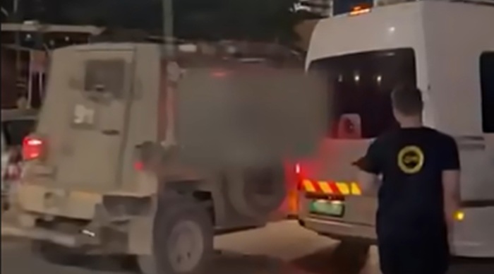 Kendaraan militer Israel dengan sengaja menabrak bus pengangkut jamaah haji Palestina di Tepi Barat, Sabtu (31/5/2025) dini hari. FOTO/SCREENSHOT