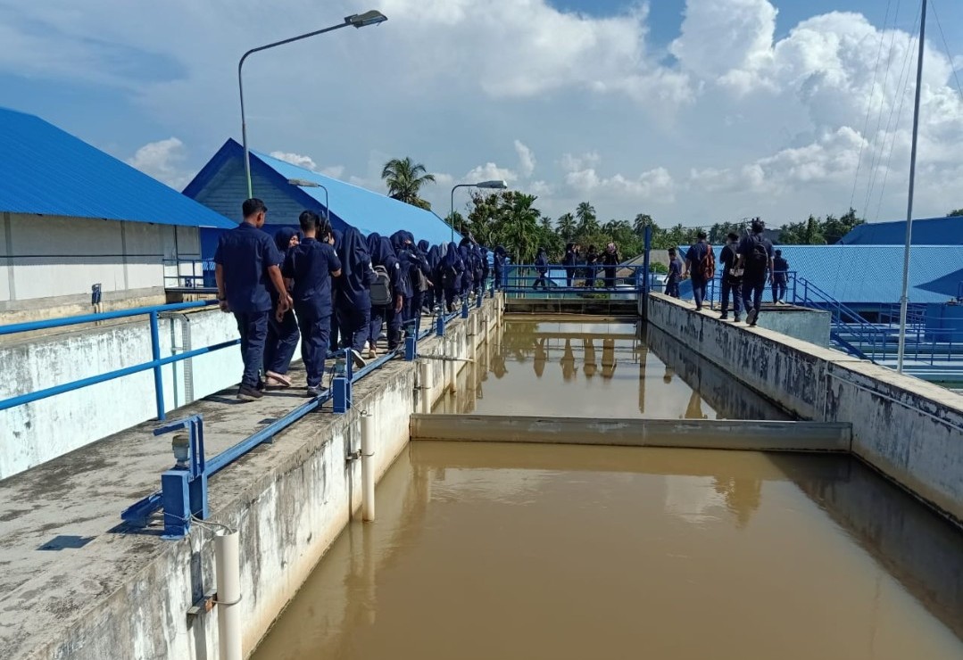 Kunjungan mahasiswa jurusan kesehatan lingkungan Poltekkes Aceh yang didampingi oleh dosen pengampu mata kuliah Fisika Lingkungan DR. Irhamni, ST.,MT yang merupakan staf pengajar dan juga sebagai Ketua Program Studi Teknik Kimia di Fakultas Teknik Universitas Serambi Mekkah dan didampingi oleh Salfauqi, S.Si.,M.Si yang merupakan dosen kimia Lingkungan ke PDAM di bagian WTP (Water Treatment Plant) yang berlokasi di Desa Lubok Batee, Ingin Jaya, Aceh Besar.