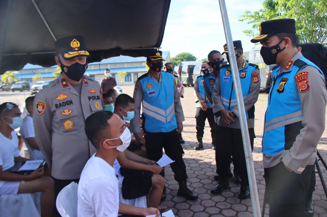 posaceh.com, Banda Aceh – Kapolda Aceh Irjen Pol. Drs. Wahyu Widada, M. Phil, meninjau dan melihat langsung kegiatan pemeriksa kesehatan ( Rikkes) tahap I Calon Bintara Polri yang digelar di Rumah Sakit Bhayangkara Polda Aceh, Lamteumen Banda Aceh, Selasa (27/4/2021) pagi.