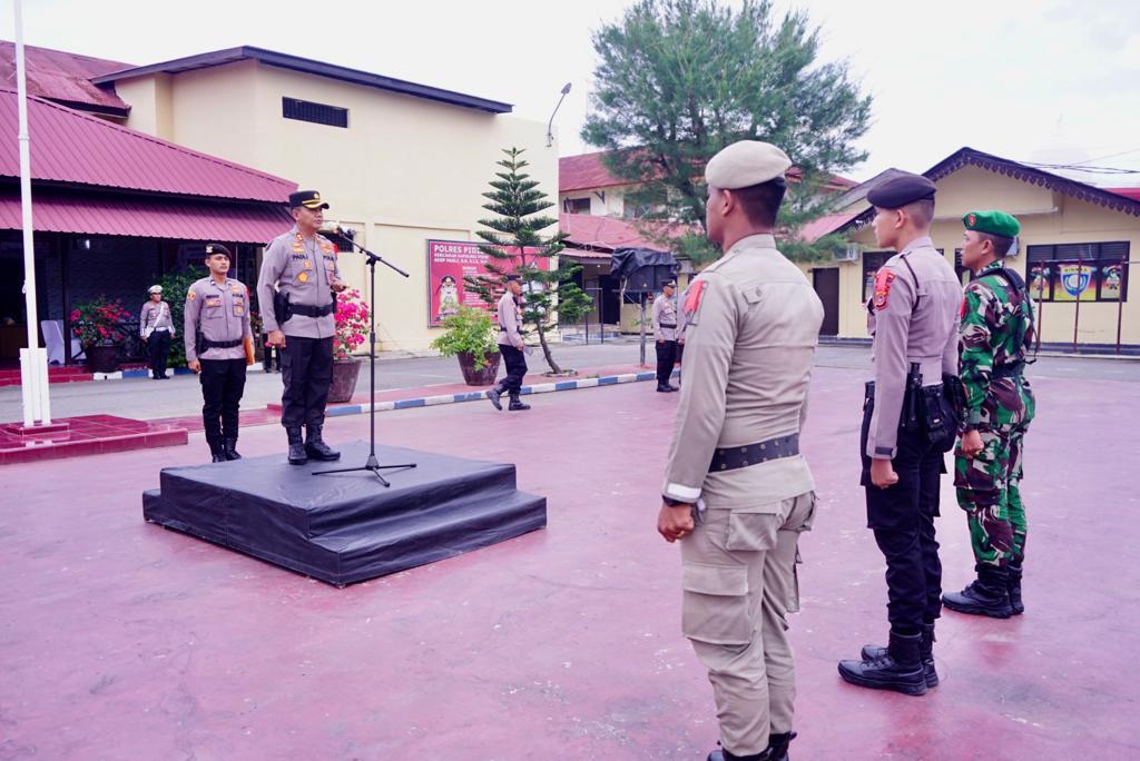 Kapolres Pidie AKBP Padli memimpin apel Gelar Pasukan Operasi Lilin Seulawah 2022, dilapangan apel Mapolres Pidie, Sigli, Kamis (22/12/2022). FOTO/ DOK HUMAS POLRES PIDIE
