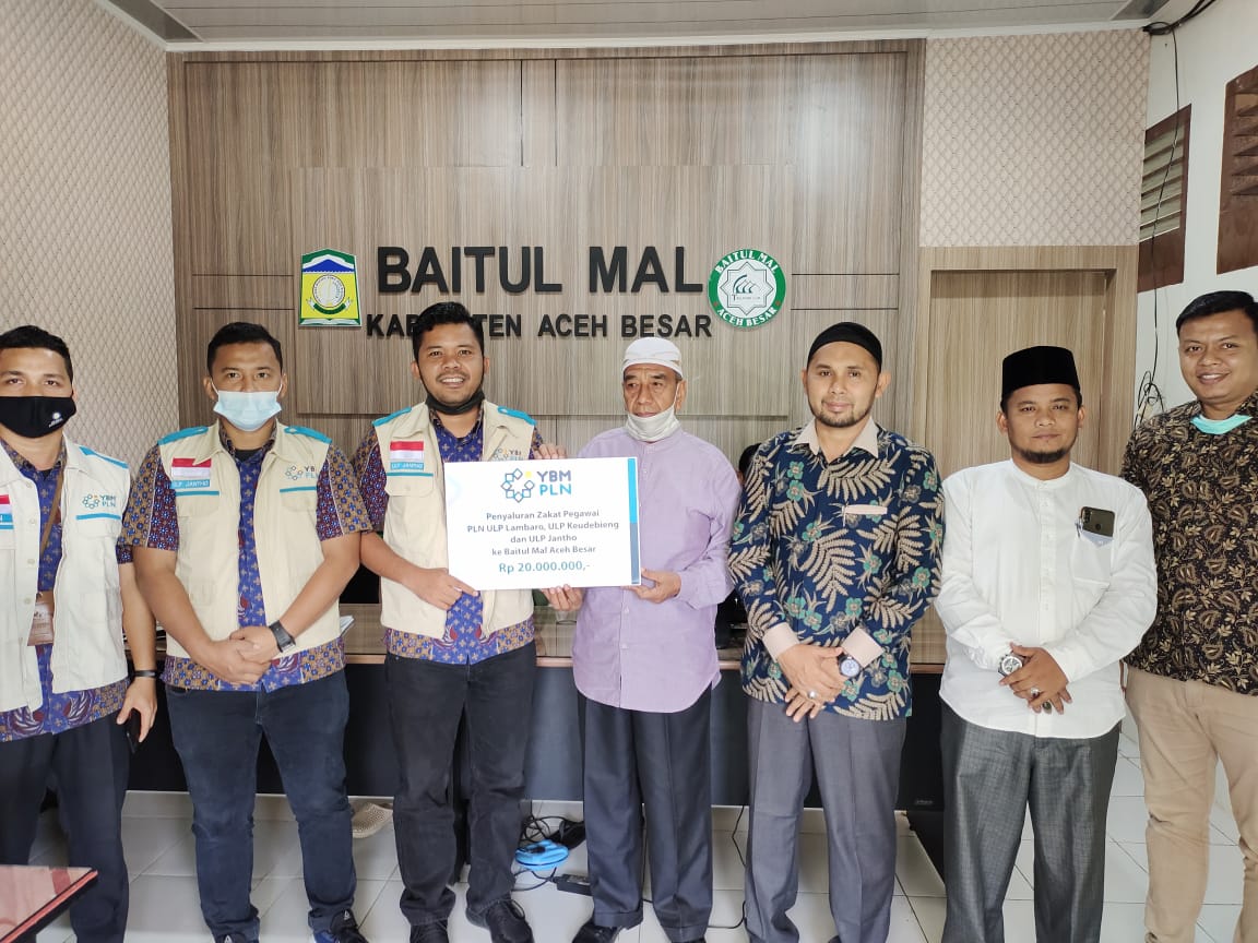 FOTO/ DOK BAITUL MAL ACEH BESAR Manager PLN ULP Lambaro, Andre Agusta Rahman menyerahkan zakat penghasilan karyawan dan karyawati PT PLN ULP Jantho, Lambaro dan Keudee Bieng sebesar Rp 20 juta yang diterima Kepala Baitul Mal Kabupaten Aceh Besar Drs Zamri A Rafar didampingi Kepala Sekretariat Baitul Mal Heru Saputra SH MH, di Kantor Baitul Mal Aceh Besar, Kota Jantho, Kamis (29/4/2021).