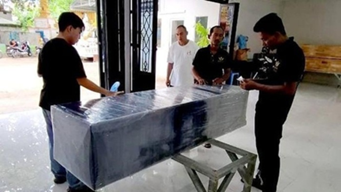 Peti mati jenazah WNI sebelum diterbangkan ke Sumatera Utara di Kamboja. FOTO/DOK KBRI