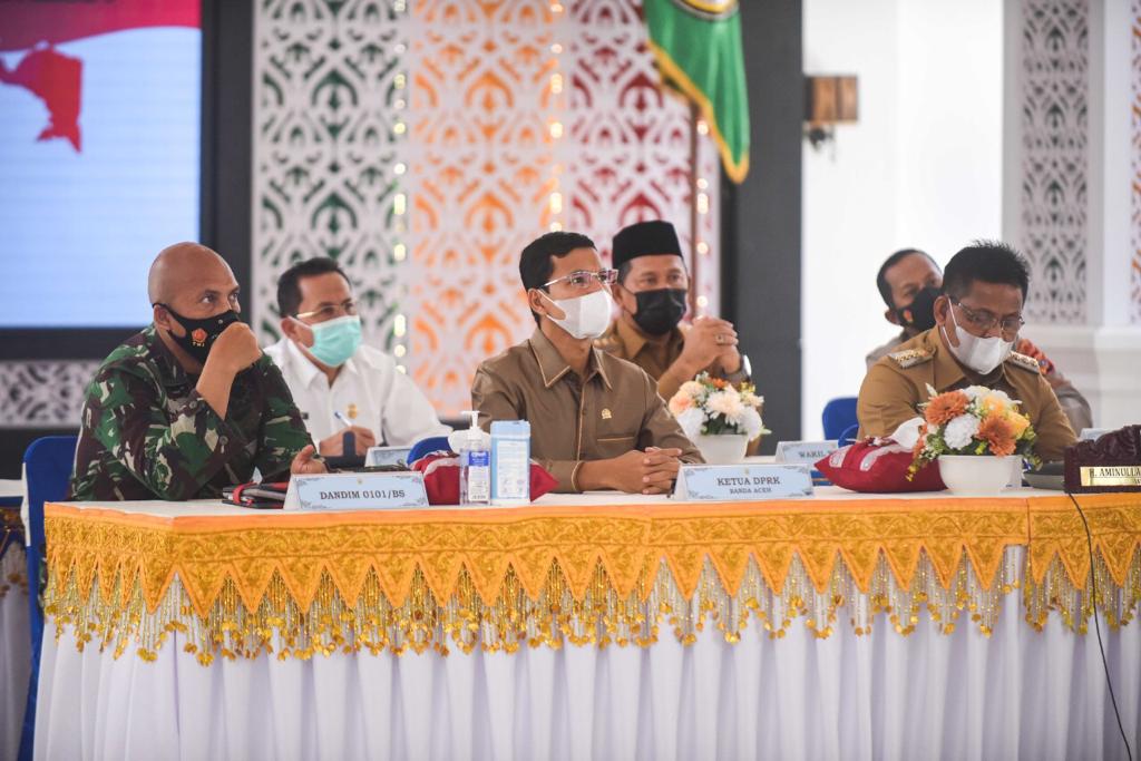 posaceh.com, Banda Aceh – Ketua Dewan Perwakilan Rakyat Kota (DPRK) Banda Aceh, Farid Nyak Umar, menghadiri Rapat Koordinasi Kepala Daerah seluruh Indonesia yang berlangsung secara virtual dan dipusatkan di Pendopo Wali Kota Banda Aceh, Rabu (28/4/2021).