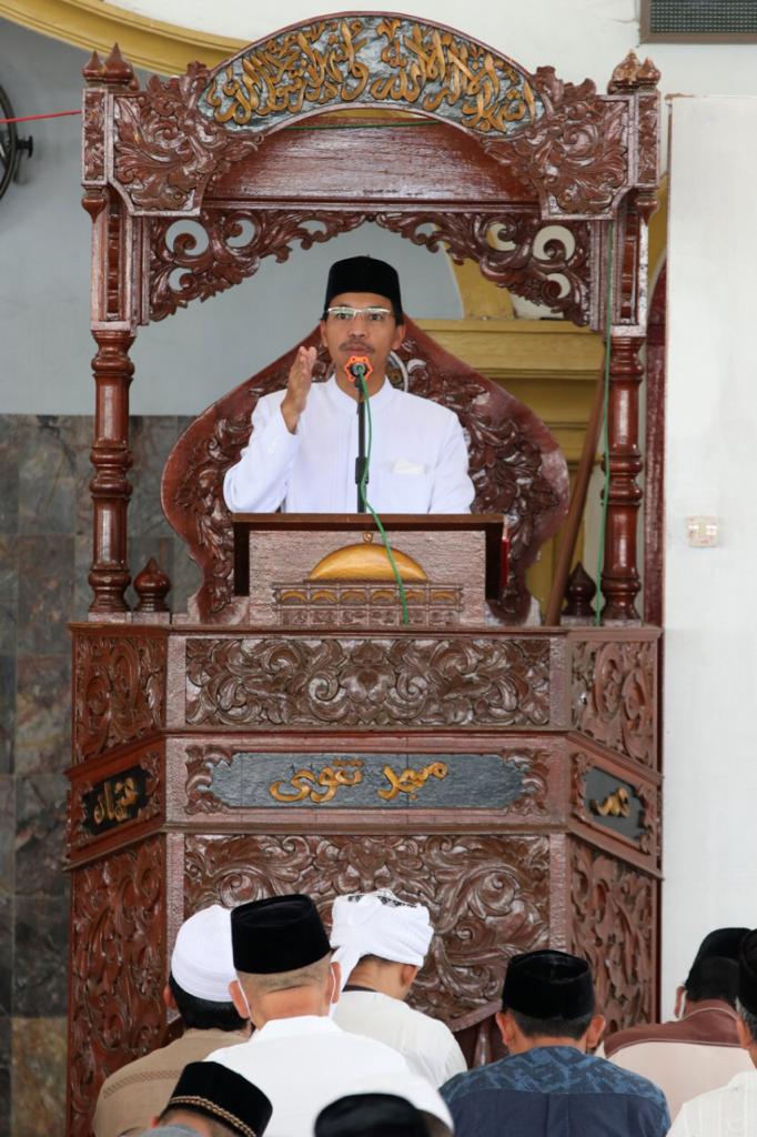 posaceh.com, Banda Aceh – Ketua Dewan Perwakilan Rakyat Kota (DPRK) Banda Aceh, Farid Nyak Umar, menyampaikan khutbah Jumat di Masjid Taqwa, Gampong Seutui, Kecamatan Baiturrahman, Banda Aceh, Jumat (30/4/2021).