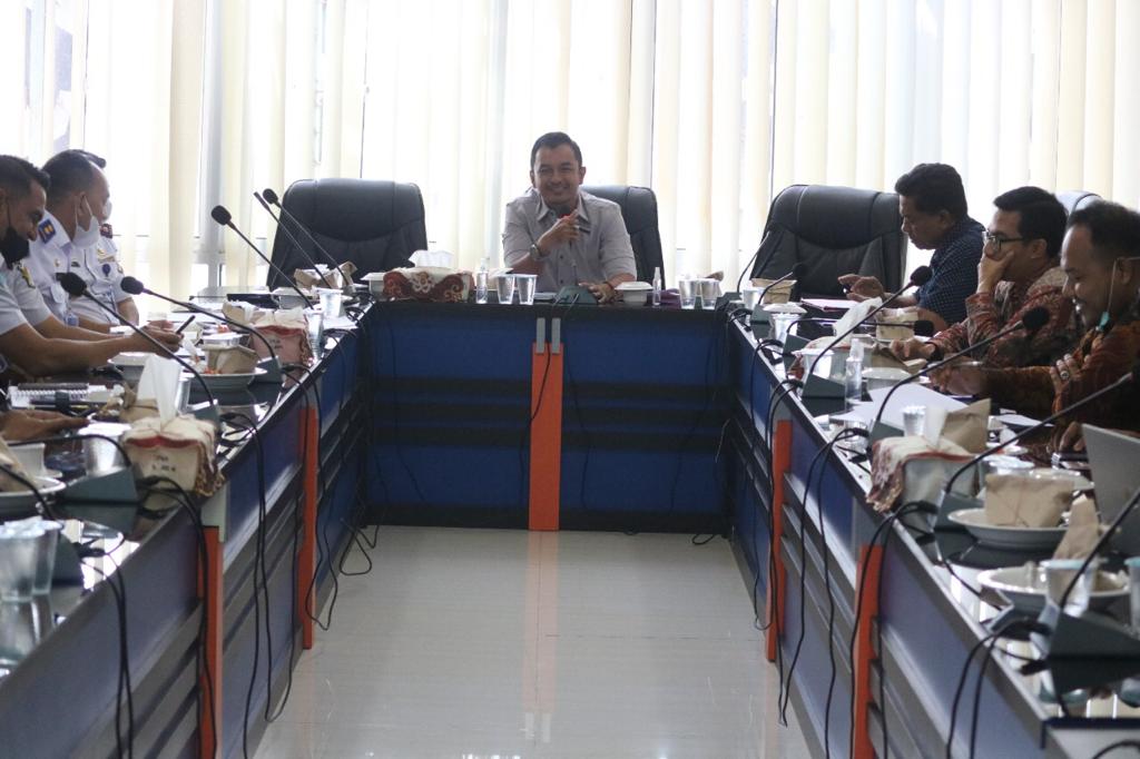 Ketua Komisi III DPRK Banda Aceh, Teuku Arief Khalifah memimpin rapat dengan dinas terkait untuk melakukan pembahasan awal Rancangan Qanun Kota Banda Aceh Nomor 5 Tahun 2021 tentang Retribusi Pengujian Kendaraan Bermotor di ruang Banggar DPRK Banda Aceh, Selasa (15/2/2022). FOTO/ HUMAS DPRK BANDA ACEH