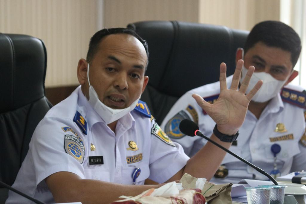 Sekdis Perhubungan Kota Banda Aceh Muhammad Zubir saat mengikuti rapat pembahasan awal Rancangan Qanun Kota Banda Aceh Nomor 5 Tahun 2021 tentang Retribusi Pengujian Kendaraan Bermotor dengan Komisi III DPRK Banda Aceh di ruang Banggar DPRK Banda Aceh, Selasa (15/2/2022).