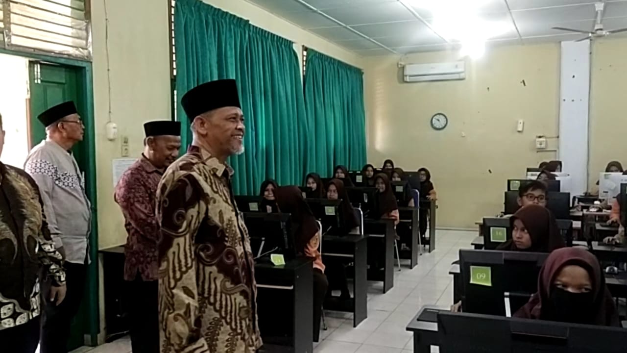 Didampingi kepala madrasah, kepala Kankemenag Aceh Besar memantau dan menyemangati siswa yang sedang ujian, beliau meminta agar siswa teliti dan menjawab semua soal dengan tepat dan benar, sehingga mendapat hasil yang memuaskan.