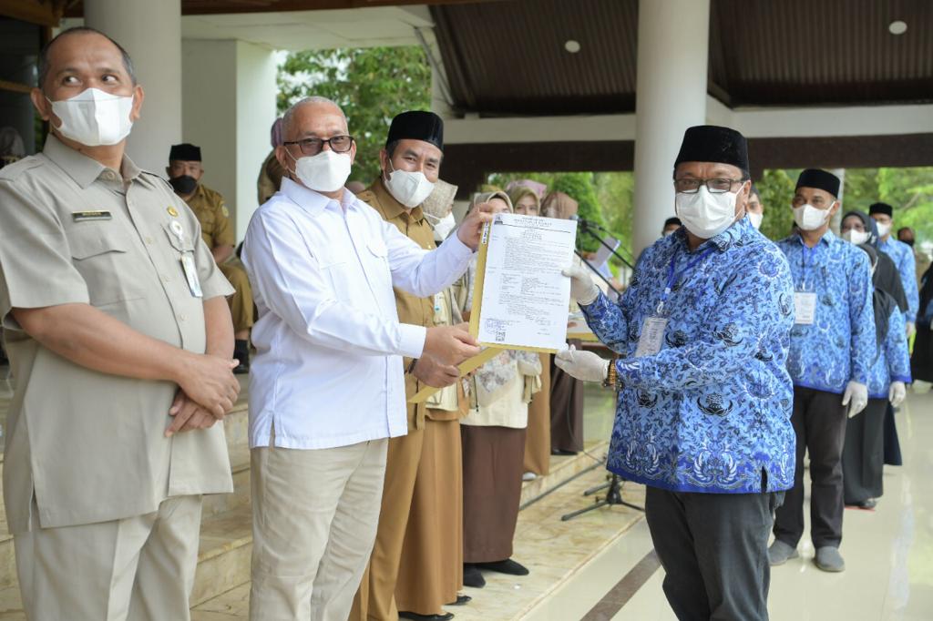 Prosesi penyerahan SK yang diberikan langsung oleh Sekda Aceh itu, berlangsung dengan penerapan protokol kesehatan ketat, memakai masker, menggunakan sarung tangan, dan menjaga jarak.