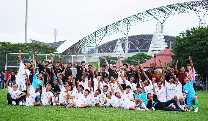 Foto bersama tim PSAB, usai meraih juara pada perebutan Piala Soeratin U-17 Zona Aceh, Tim PSAB Aceh Besar, di Lapangan Sintetis, Stadion Harapan Bangsa, Lhong Raya, Banda Aceh, Kamis (28/11/2024) sore. FOTO/ DOK PSAB