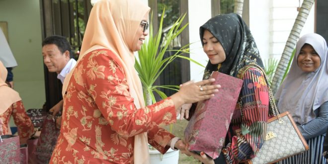 posaceh.com, Banda Aceh– Ketua Dharma Wanita Persatuan (DWP) Aceh, Mellani Subarni, menyerahkan bingkisan dan takjil bagi pegawai non ASN khususnya petugas kebersihan di Sekretariat Daerah Aceh dalam rangka Bakti Sosial Ramadhan 1444 Hijriah, Jumat (14/4/2023).