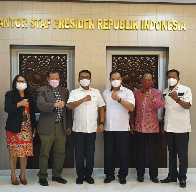 Panitia Pelaksana KKN Kebangsaan UPR Palangkaraya, usai beraudiensi dengan Kepala Kantor Staf Presiden, Moeldoko di kompleks Sekretariat Negara, Jakarta, Selasa (22/2). ISTIMEWA