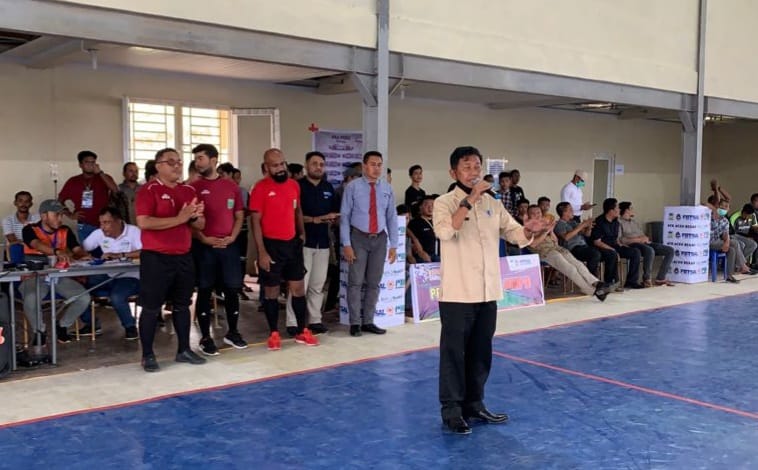 Kepala Dinas Pariwisata Pemuda dan Olahraga Aceh Besar Ridwan Jamil, SSos MSi saat memberkan arahan saat pembukaan kegiatan olahraga di JSC Kota Jantho, beberapa waktu lalu.