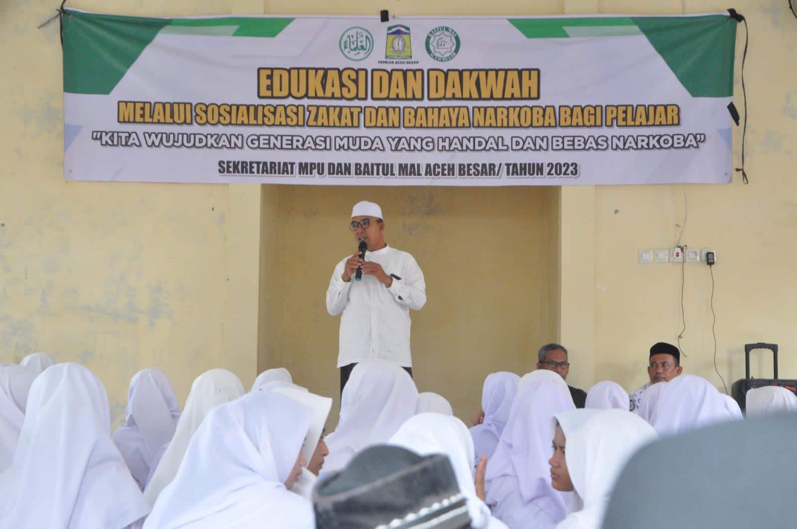 posaceh.com, Kota Jantho – Majelis Permusyawaratan Ulama (MPU) Aceh Besar, di bawah kepemimpinan Tgk H Nasruddin M, bekerjasama dengan Baitul Mal Aceh Besar menggelar sosialisasi di SMPN 1 Indrapuri Aceh Besar. Kegiatan dengan tema “Kita wujudkan generasi muda yang handal dan bebas narkoba,” bertujuan mengingatkan pentingnya membayar zakat sesuai hisap, menekankan kehadiran Baitul Mal untuk memudahkan pembayaran zakat, serta menyoroti esensi cita-cita tinggi sambil menjaga tanggung jawab, Senin (27/11/2023).