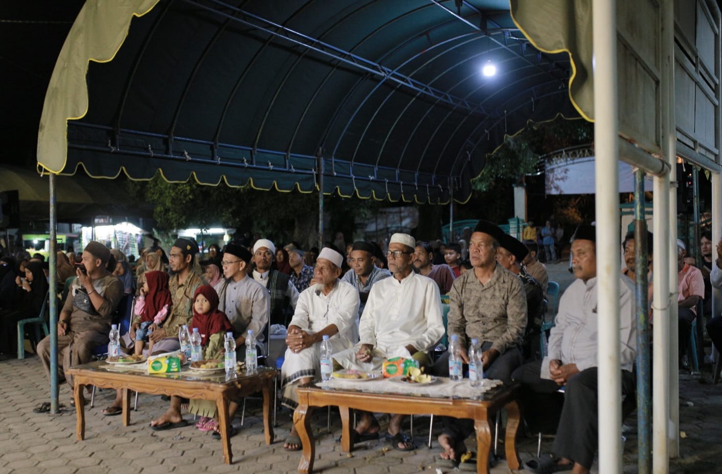 Keuchik dan perangkat Gampong Tanjong serta warga mengikuti jalannya acara penutupan MTQ ke-2 dan ceramah Maulid Nabi Muhammad saw di Meunasah Tanjong, Kecamatan Lhoknga, Aceh Besar, Selasa (12/11/2024) malam. FOTO/ILHAM RAMADANI