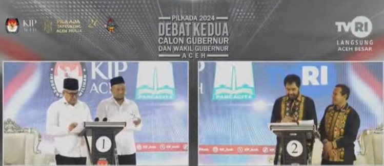 Hal itu mencuat dalam sesi tanya-jawab debat kedua paslon cagub dan cawagub Aceh dengan moderator, Romy Zuliansyah dan Ida Almaddany di The Pade Hotel, Lampeneurut, Darul Imarah, Aceh Besar Jumat (1/11/2024) malam,